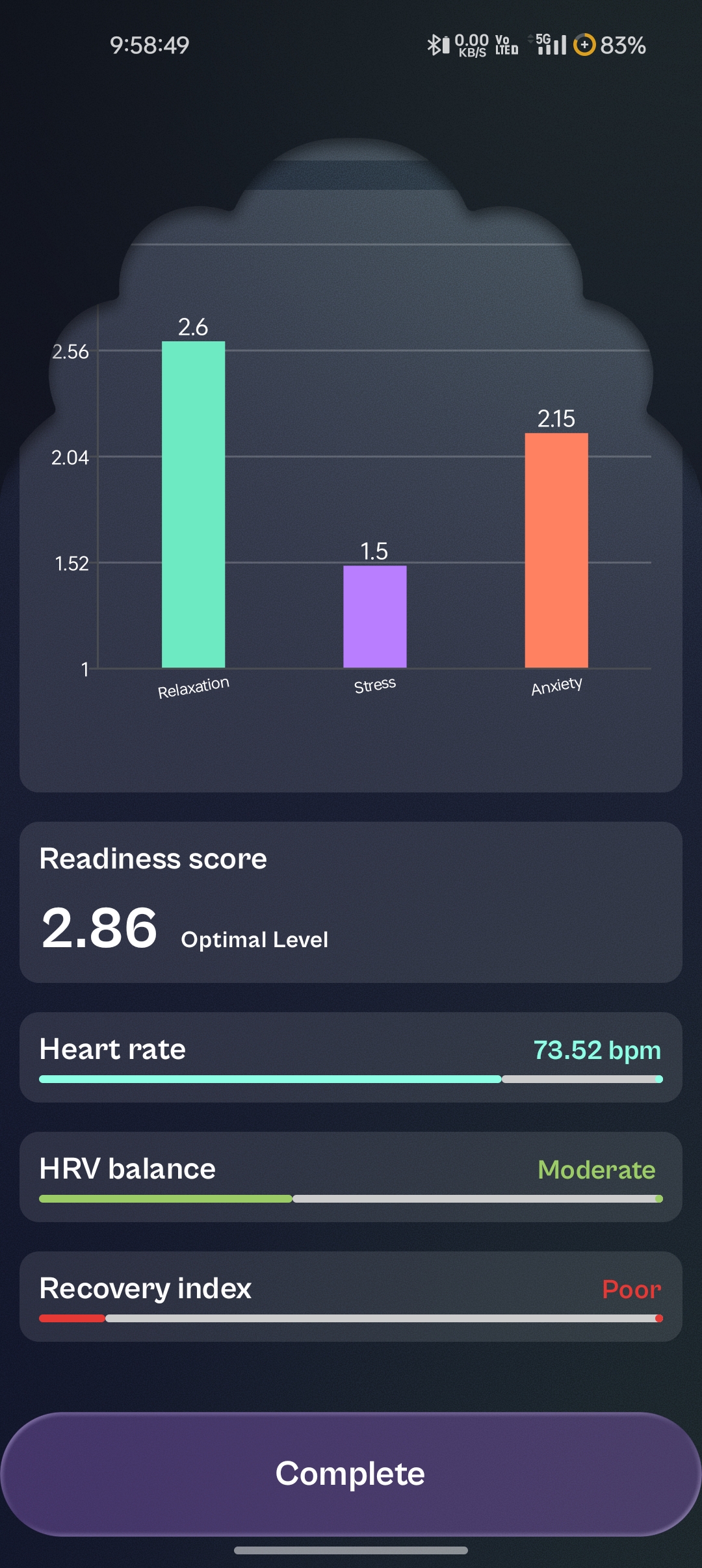what is range for optimal level for ex. 1-2 is optimal, and what are the other category of Readiness score.