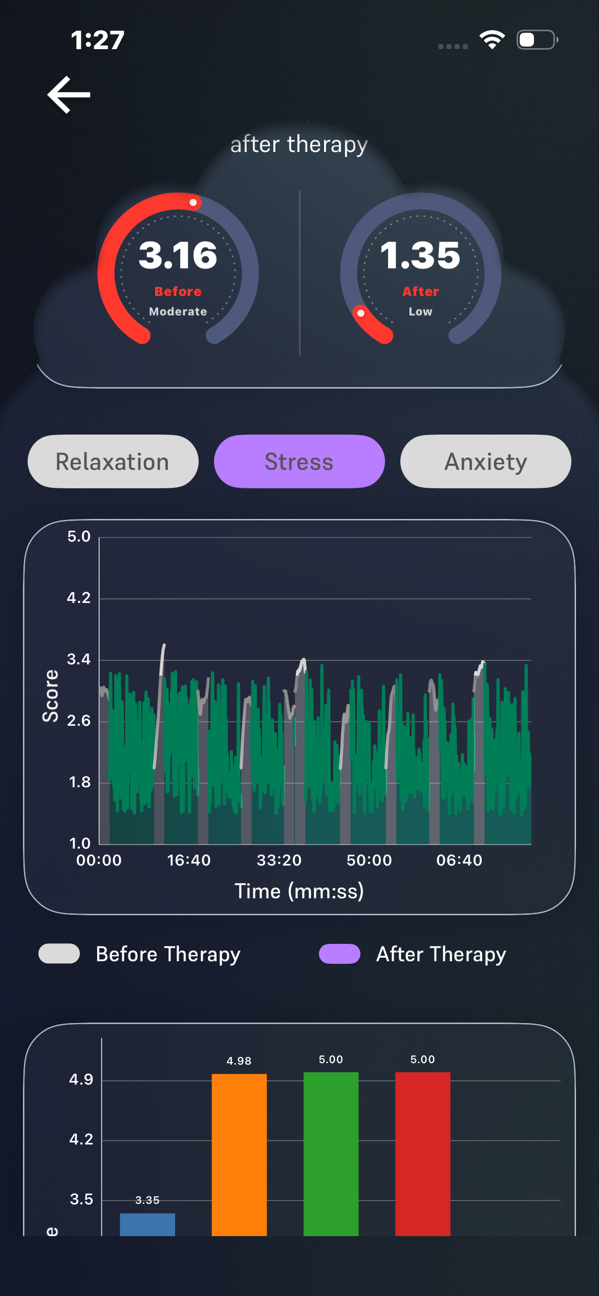 In the Progress section line graph, the X-axis time labels are incorrect. After reaching 50 minutes, the graph shows the next time label as 6 mins, which is inconsistent with the expected time sequence.