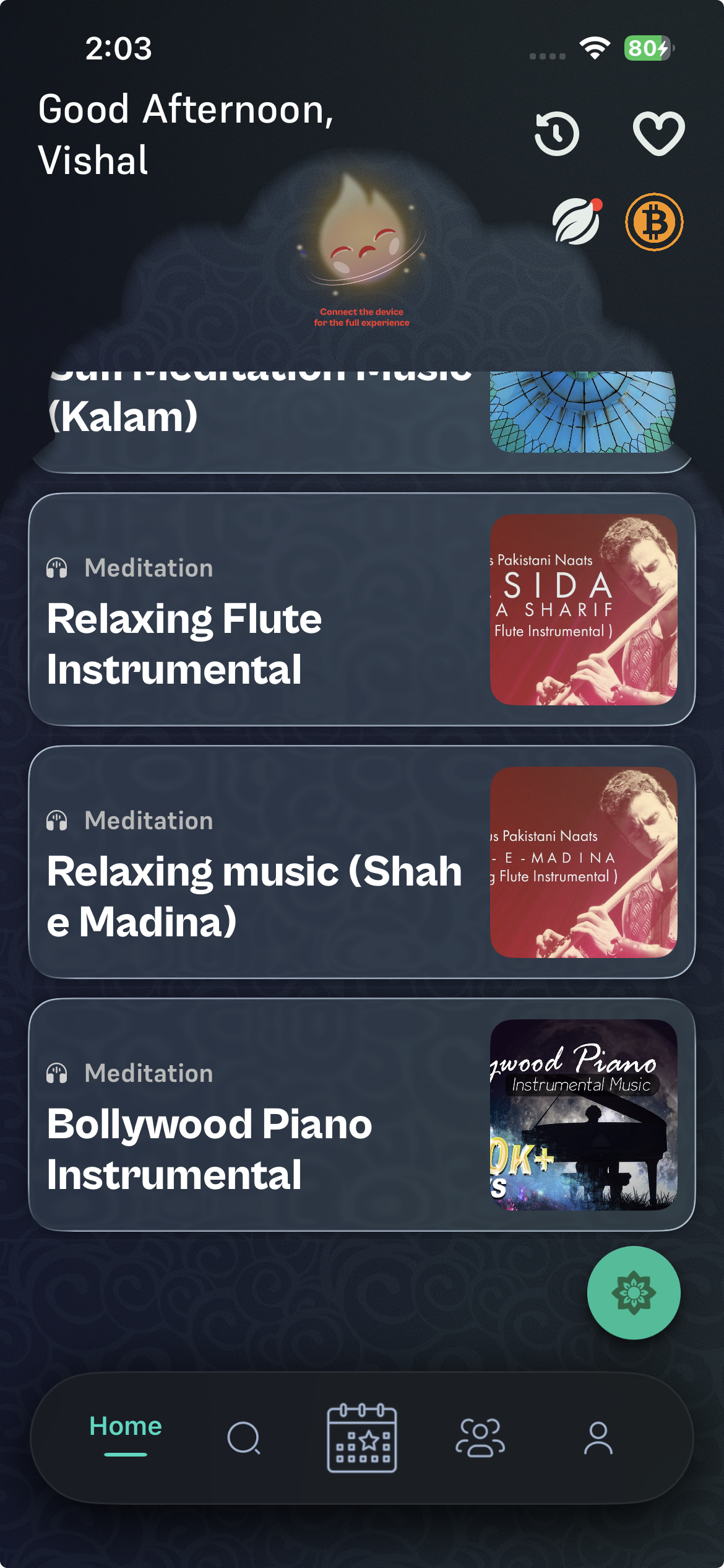 openOn the Home screen, when scrolling to the bottom, the last therapy card is partially hidden behind the bottom navigation bar (Home / Explore / Event / Profile).