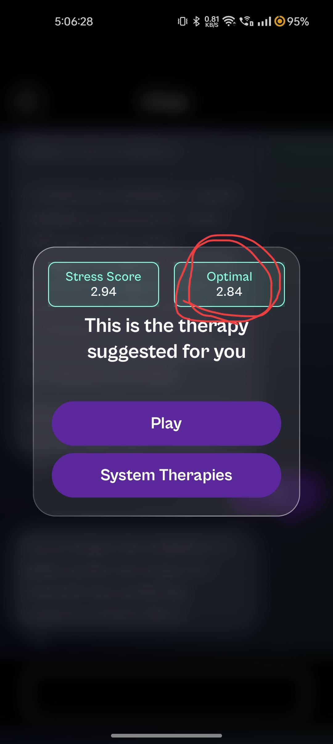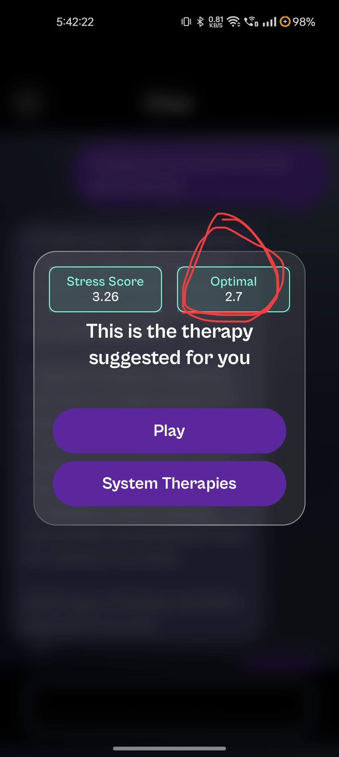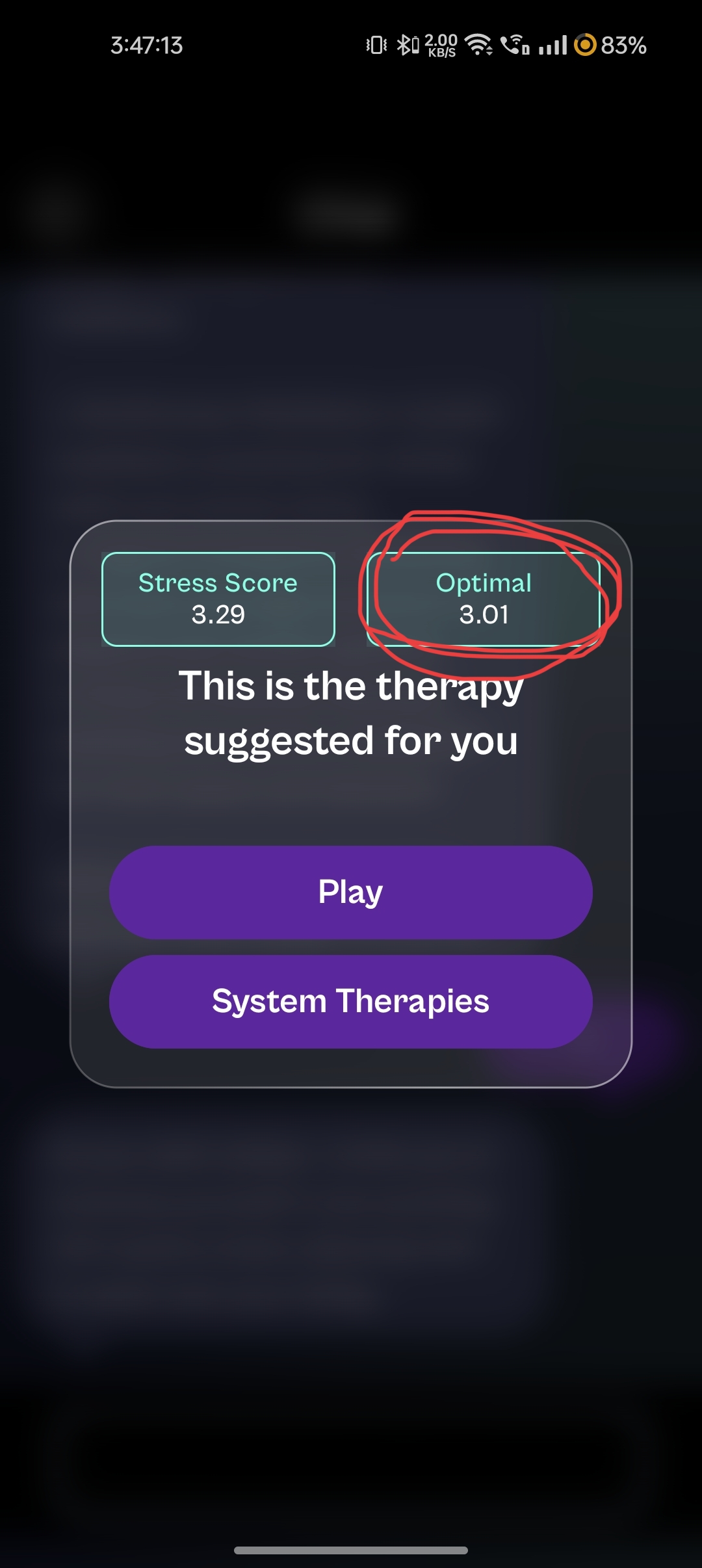 After completing the baseline, there is one optimal score for stress, which changes during every therapy.