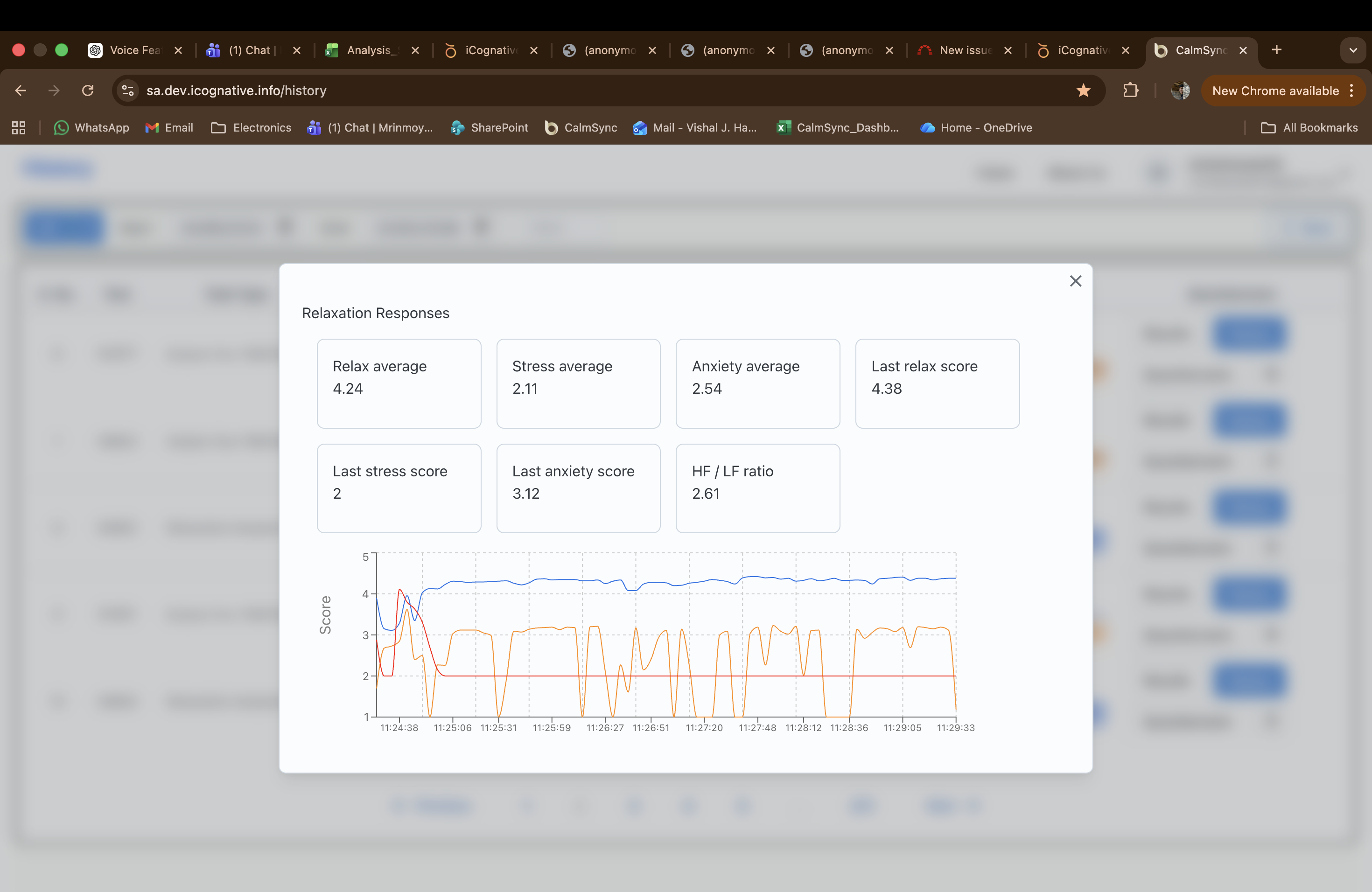 openDuring therapy, the stress score stabilizes near 2 within a few seconds of starting and remains constant thereafter.