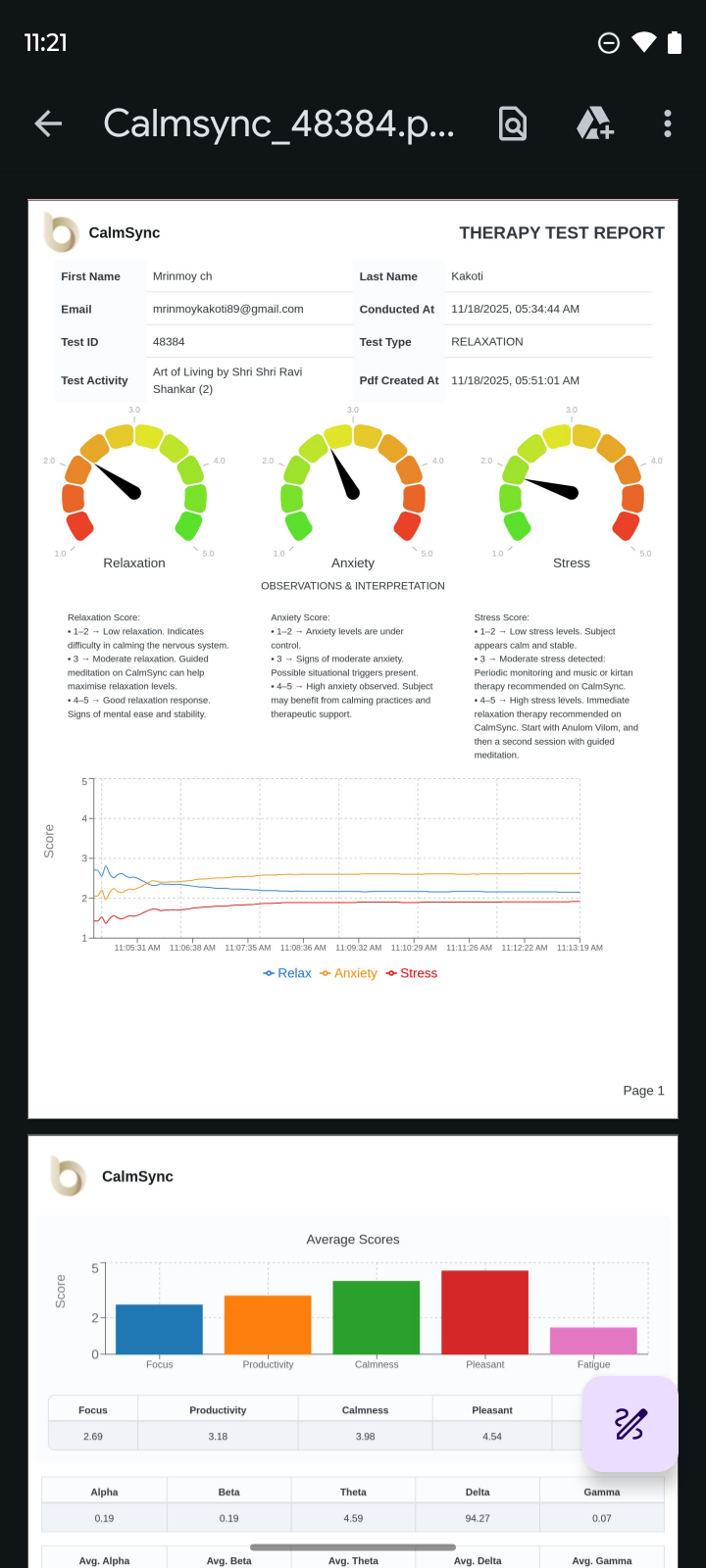 closedIn Downloaded PDF shows test type in all caps (e.g., “RELAXATION”).